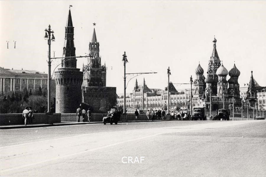 Mosca, Cremlino, basilica, S. Basilio, persone, camion, motocicletta, sidecar,...
