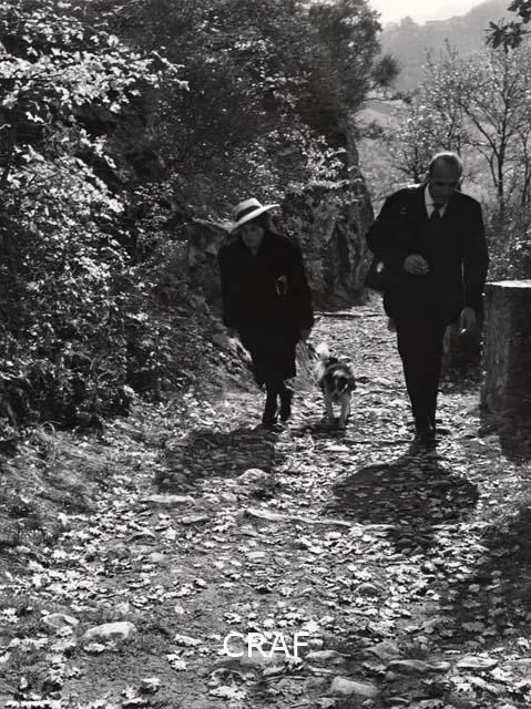 Foto N.3(la Sig.ra Ferrari Gemma, custode del castello di Canossa, si avvia in compagnia di un turista e della fedele cagnetta, verso la sommità delcolle su cui sorge il museo di Canossa vicino ai ruderi dell'antico castello)