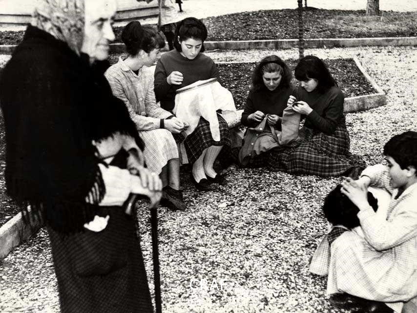 Scanno. Esterno. Donna. Veste nera. Velo nero. Uomini.