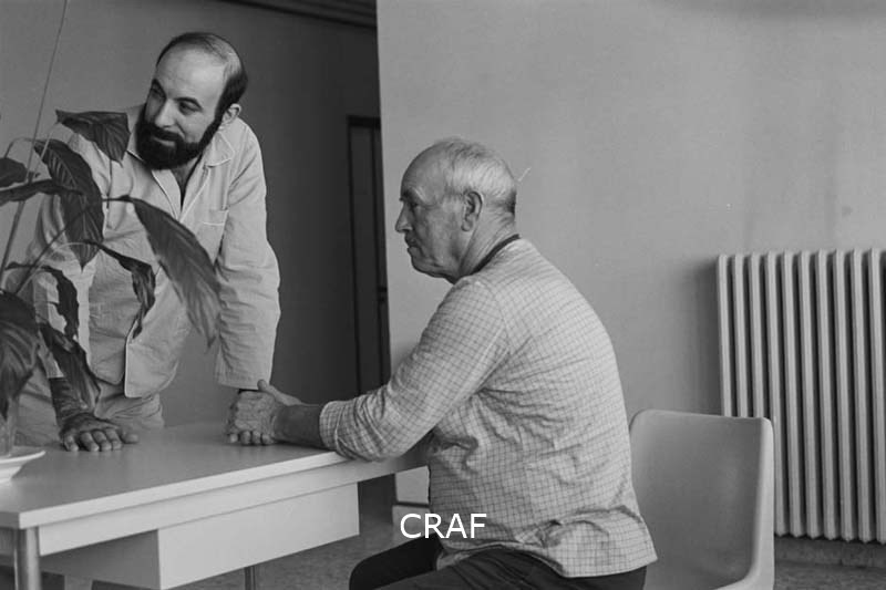 Due uomini in una stanza dell'ospedale di Avezzano: particolare di un anziano...