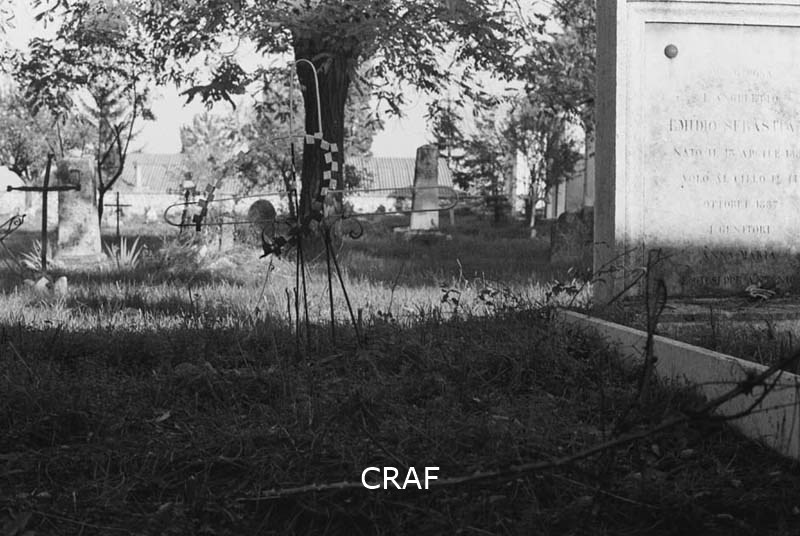 Croce e lapide all'interno del cimitero vecchio di Avezzano (AQ)