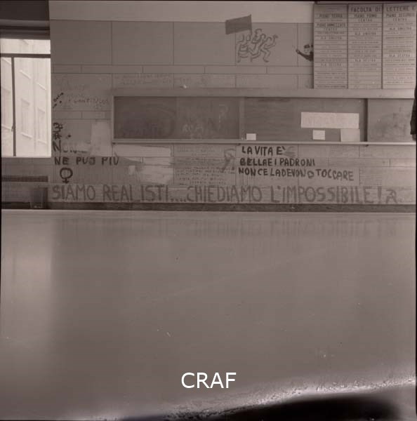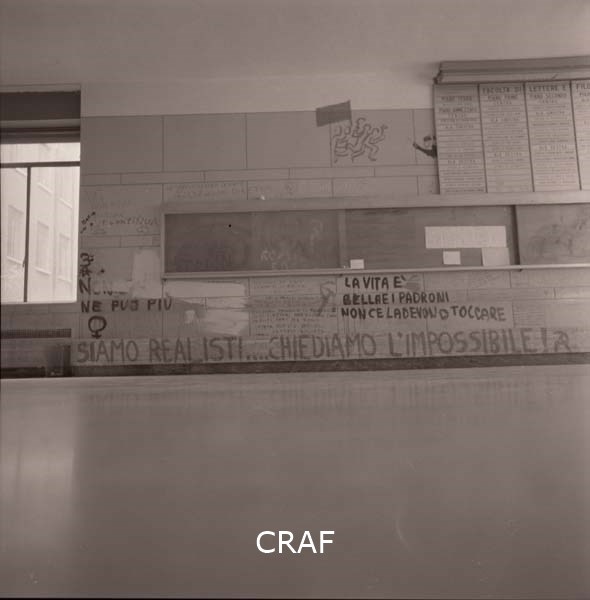 Scritte murali apportate durante l'occupazione di un'università a Roma