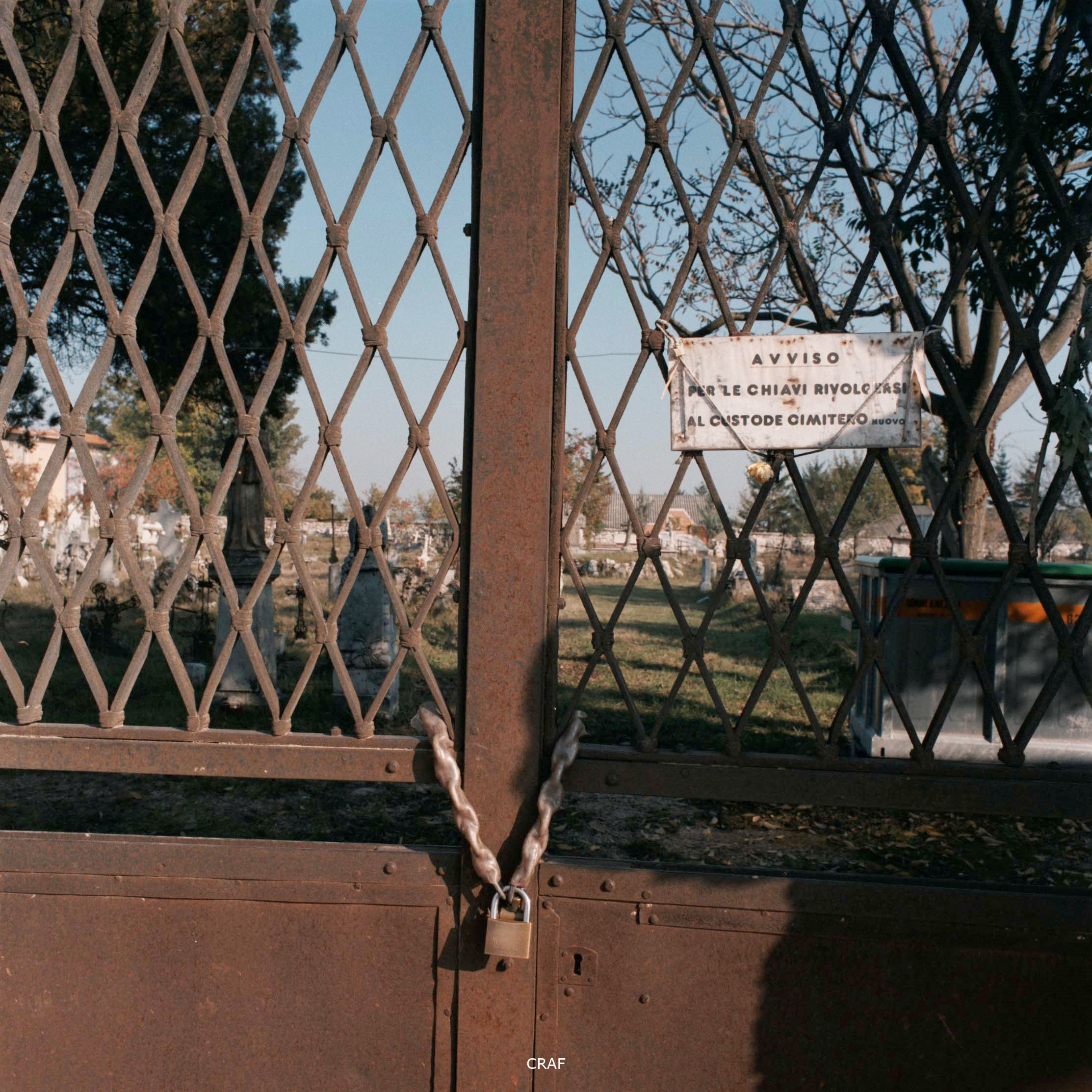 Cancello chiuso del cimitero vecchio di Avezzano (L'Aquila)