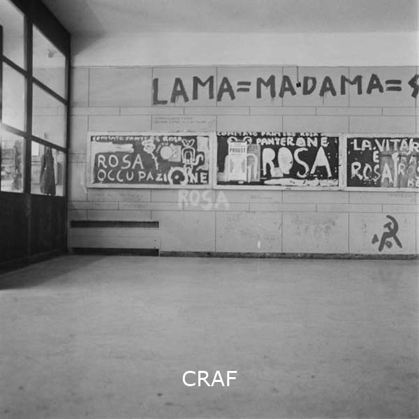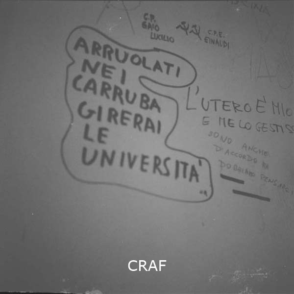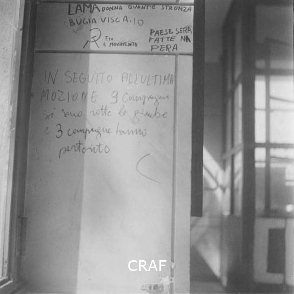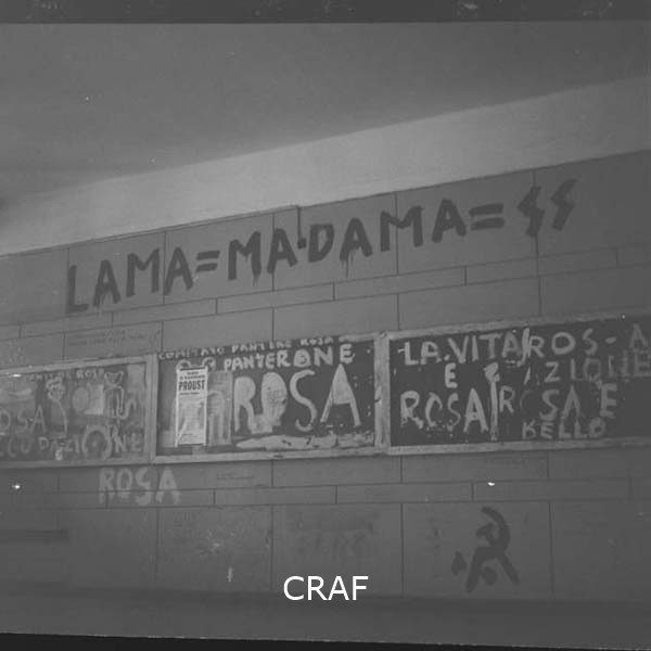 Scritte murali apportate durante l'occupazione di un'università a Roma; donna...