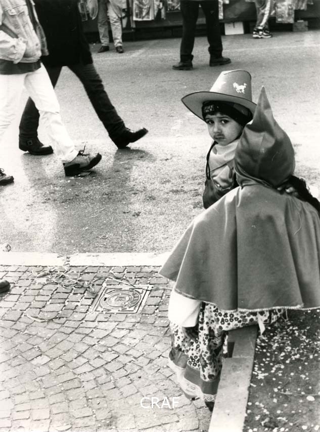 Al centro destra della fotografia due fanciulli con un costume di carnevale:una...