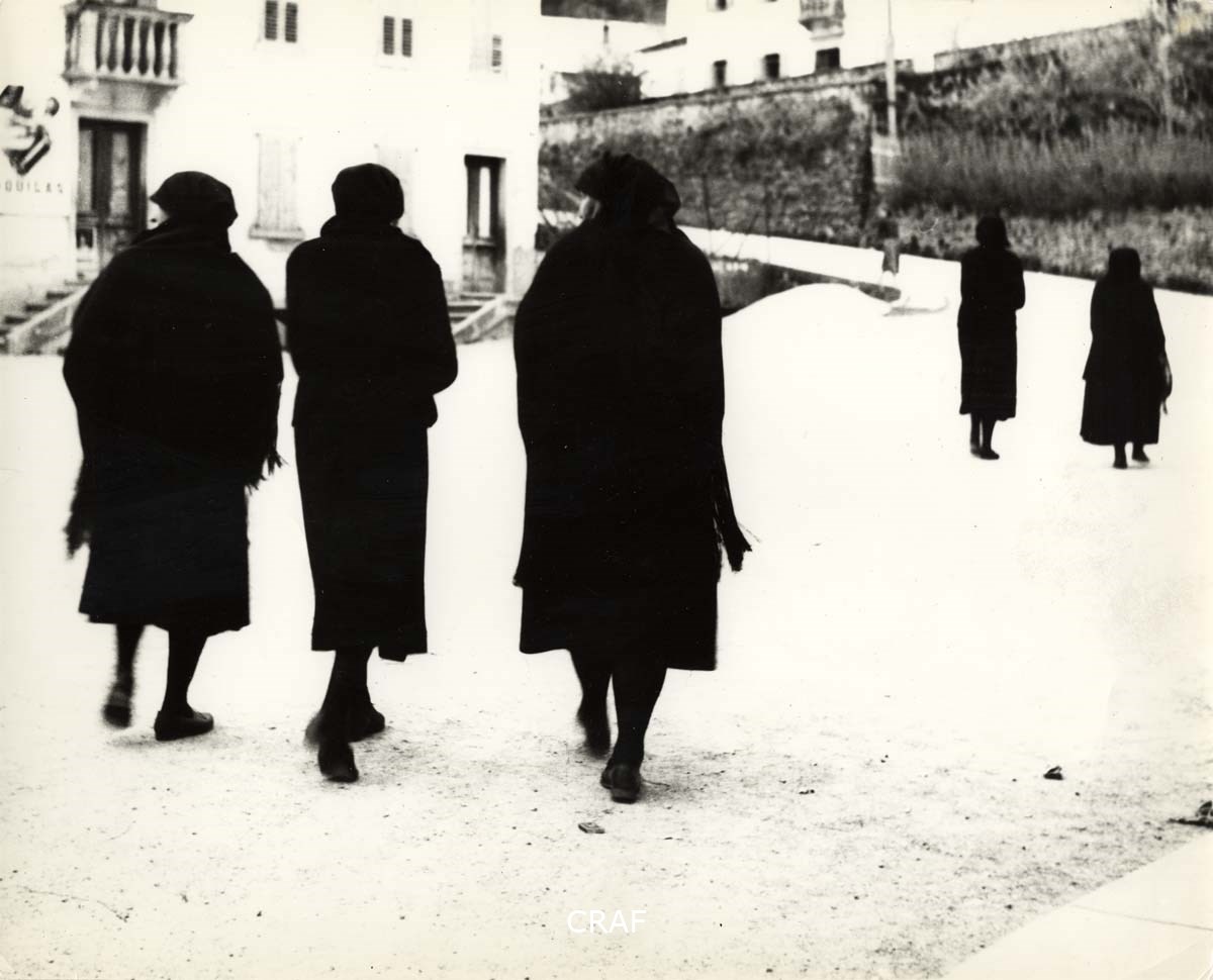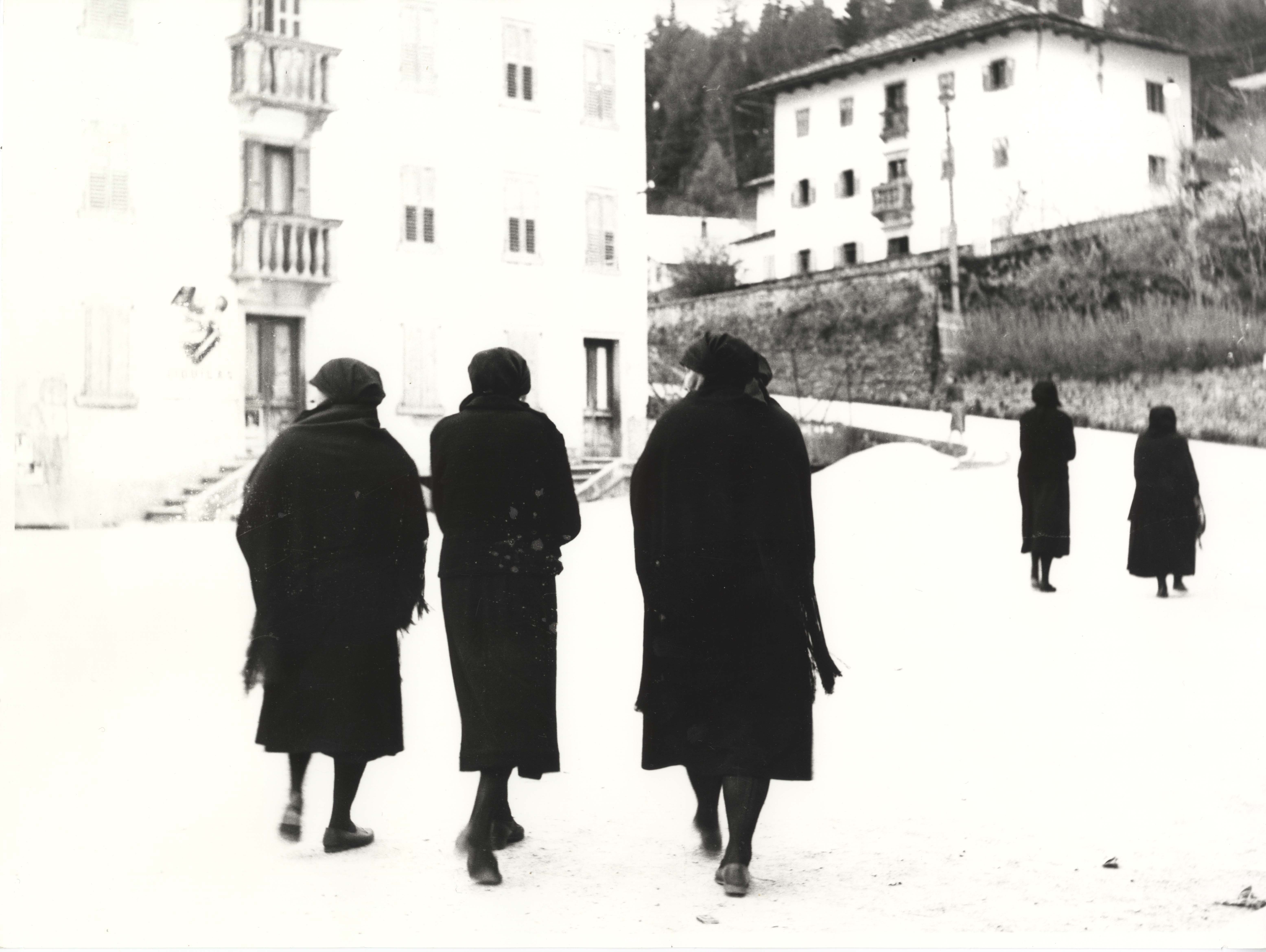 Al centro sinistra della fotografia tre donne di spalle, con abiti scuri e...