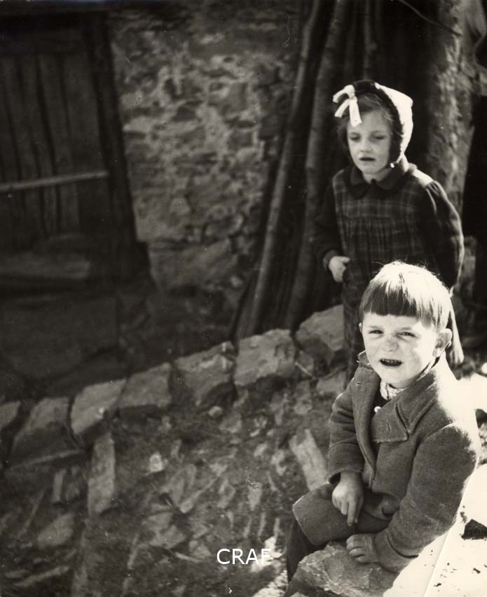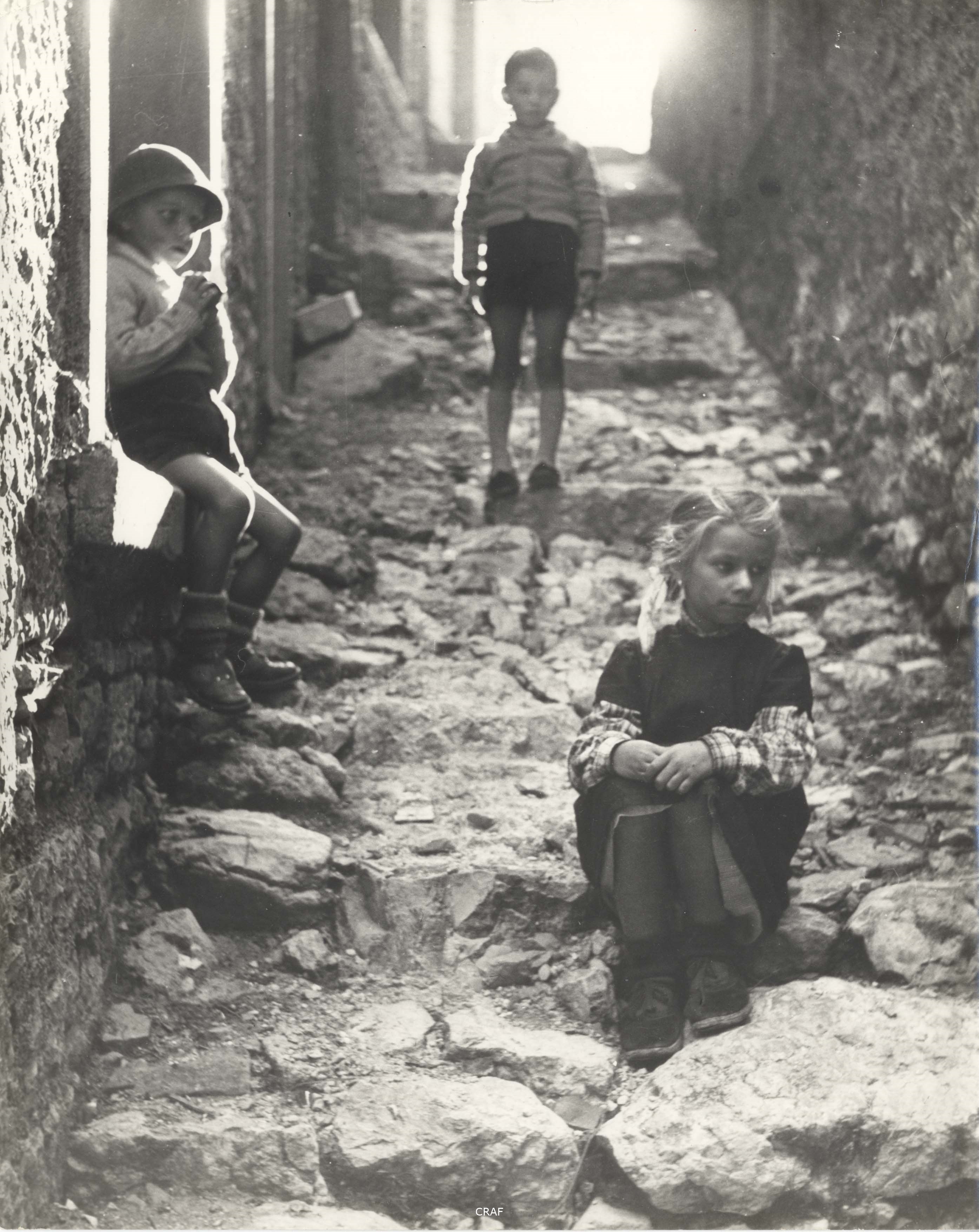 In basso a destra della fotografia un fanciullo seduto su di una pietra; dietro...