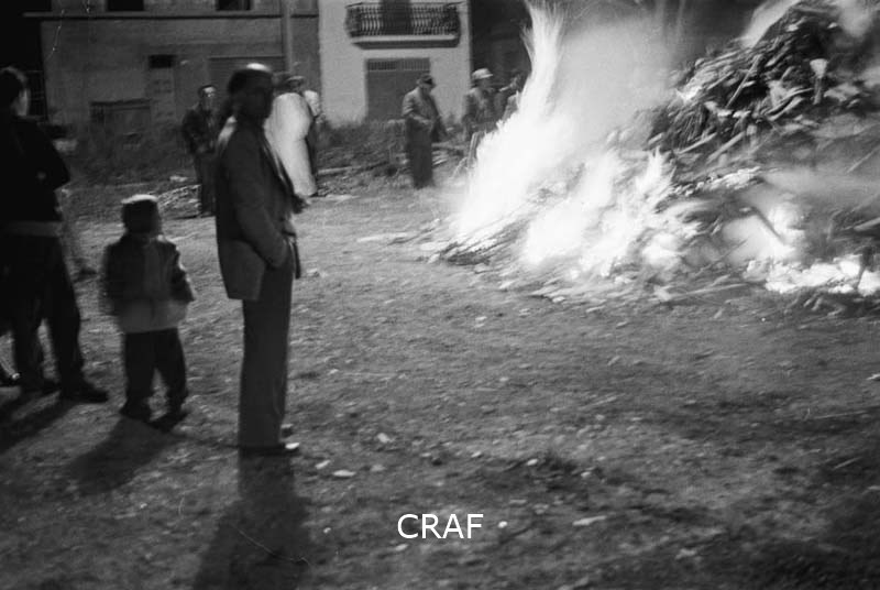 Gruppo di persone; fogaraccio (fuoco devozionale) utilizzato come rituale nella...