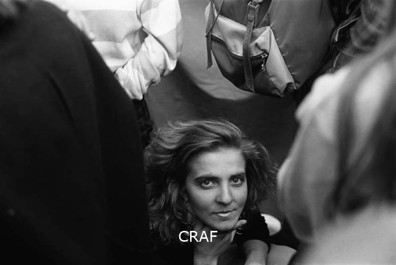 Manifestazione a Roma in difesa della legge 194; viso di una donna, seduta, tra...