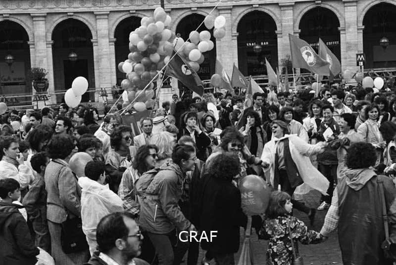 Manifestazione a Roma in diefesa della legge 194; folla di persone; al centro...