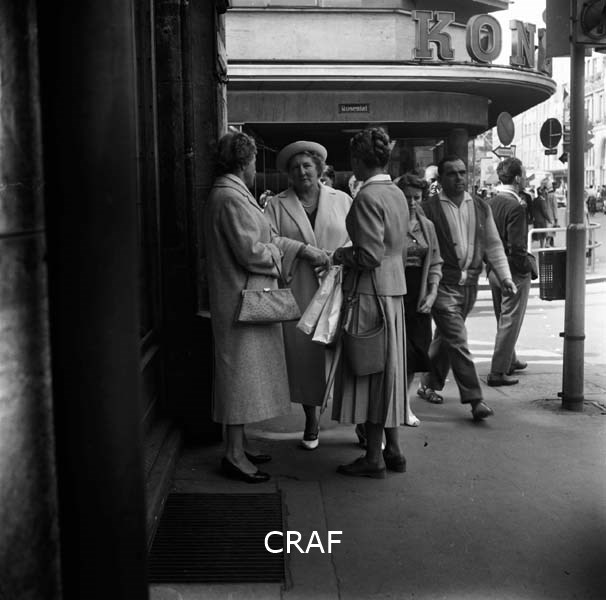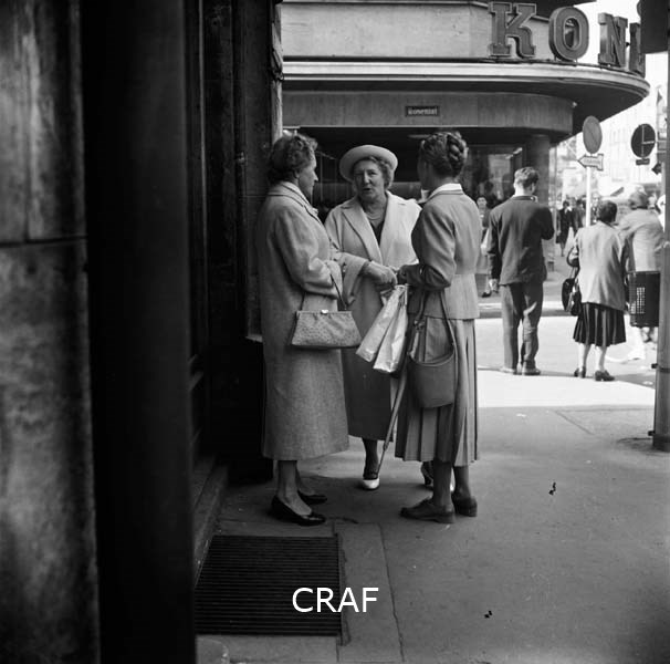 Tre donne che chiaccherano accanto alla porta di un palazzo di Monaco