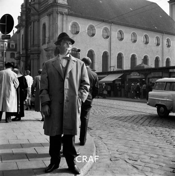 Uomo con pipa in bocca sul ciglio di una via di Monaco