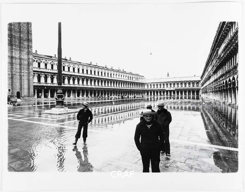 Gondolieri in Piazza San Marco invasa dall'acqua alta. Scatto realizzato in...