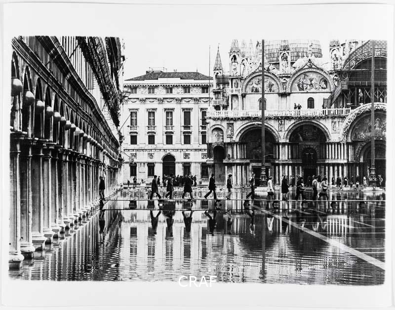 Passerelle in Piazza San Marco invasa dall'acqua alta. Scatto realizzato in...