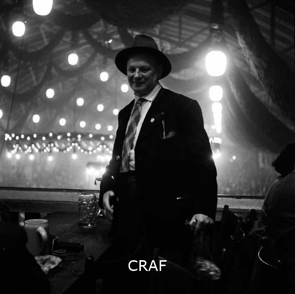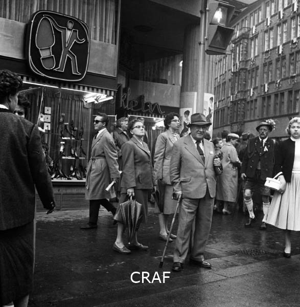 Passanti nelle vie di Monaco; al centro dell'immagine un uomo con un cappello...
