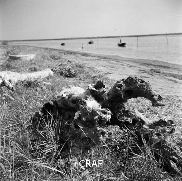 Veduta della spiaggia di Caorle dove in primo piano si scorge una radice di un...