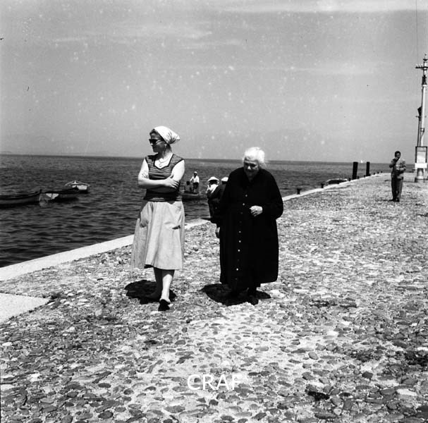 Due donne (una anziana e una giovane) mentre camminano sulla battigia di Caorle