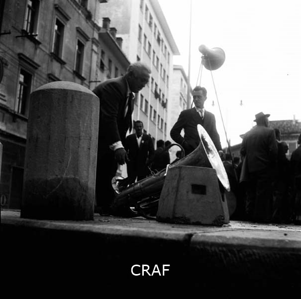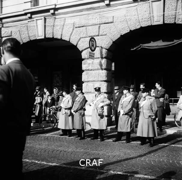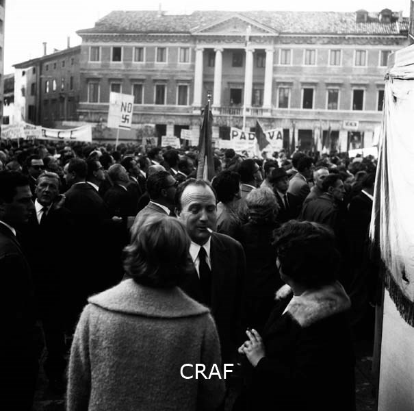 Alla manifestazione di Udine (1956-1957 ca.): il palazzo sullo sfondo...