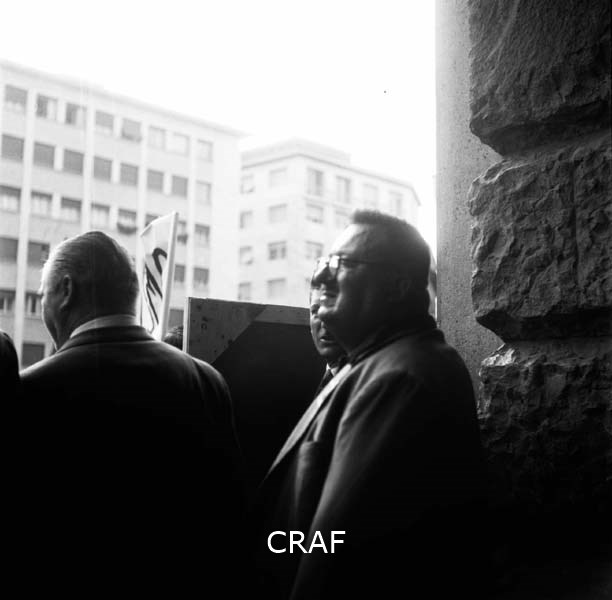 Manifestazione di Udine (1956-1957 ca.): due uomini di profilo (di cui uno con...