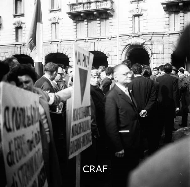 Folla di persone alla manifestazione di Udine (1956-1957 ca.); al centro...