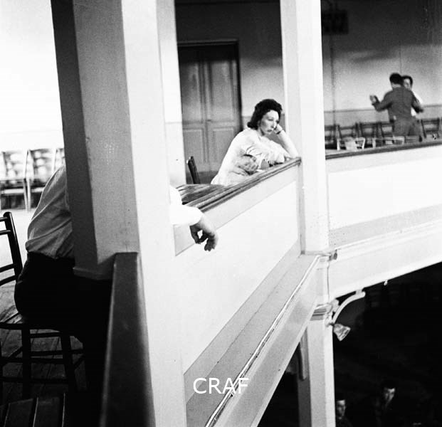 Una donna ed un uomo appoggiati al parapetto superiore all'interno della Sala...
