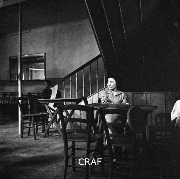 Una donna seduta sola ad un tavolo all'interno della Sala Olimpia (Paderno,...