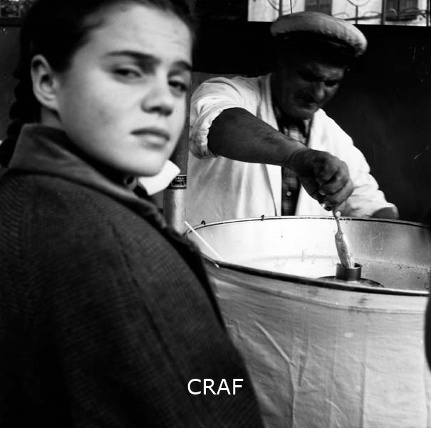Fanciulla in primo piano, in secondo piano un uomo sta facendo lo zucchero...