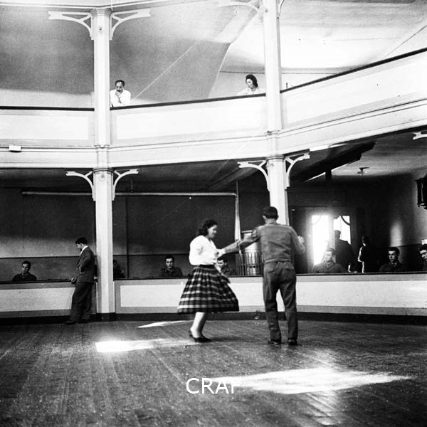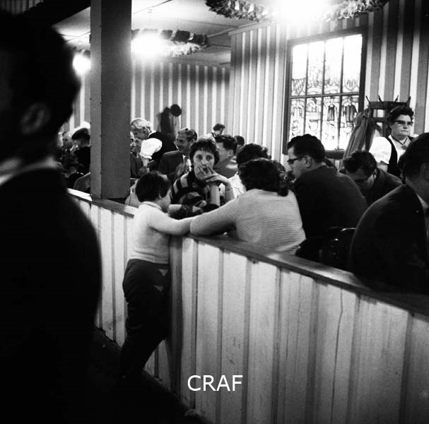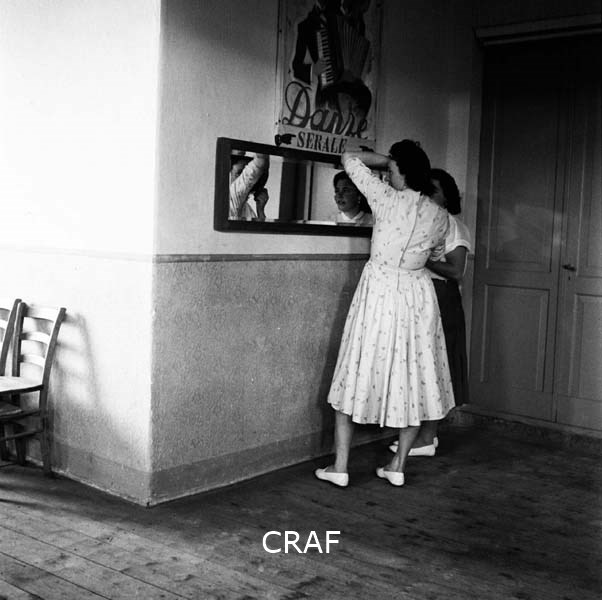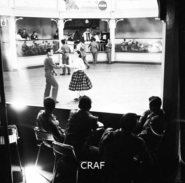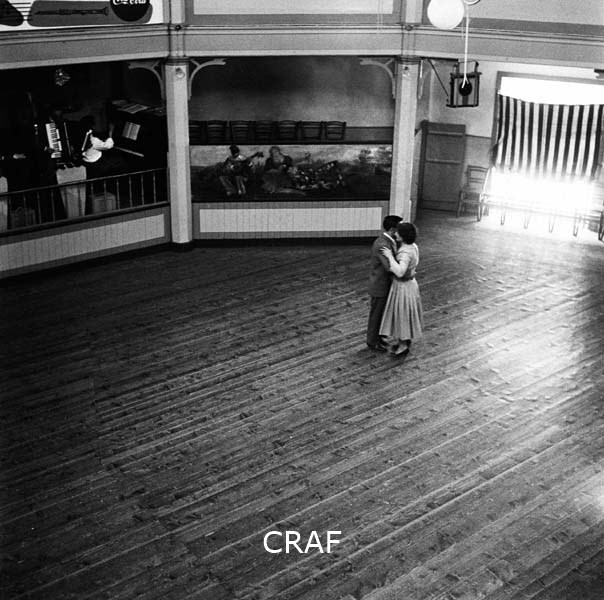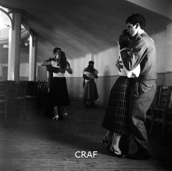 Ballerini nella pista da ballo della Sala Olimpia (di Paderno, Udine) e attorno...