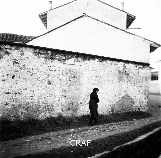 Passante accanto alle mura di una casa