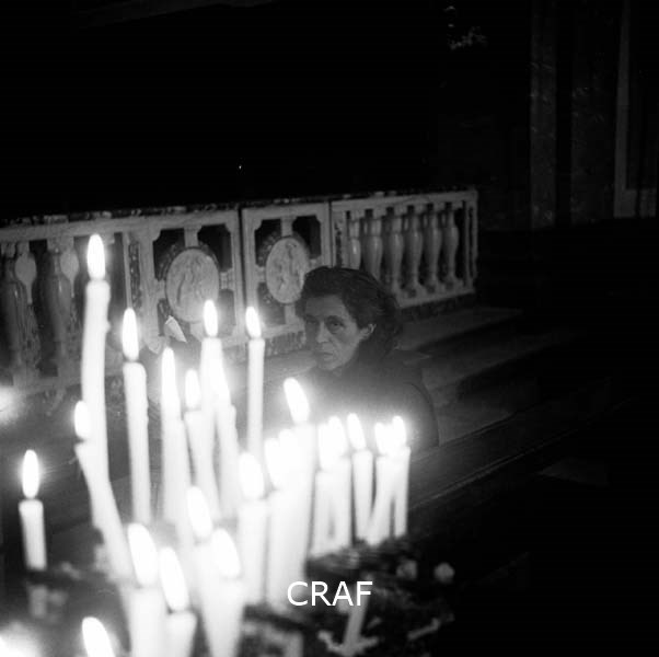 Donna seduta all'interno di una chiesa