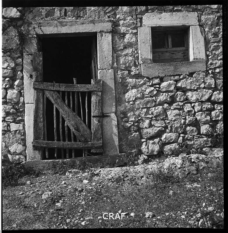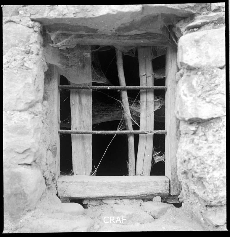 Particolare della finestra di un edificio rurale in pietra a Cocullo, paese in...