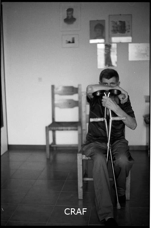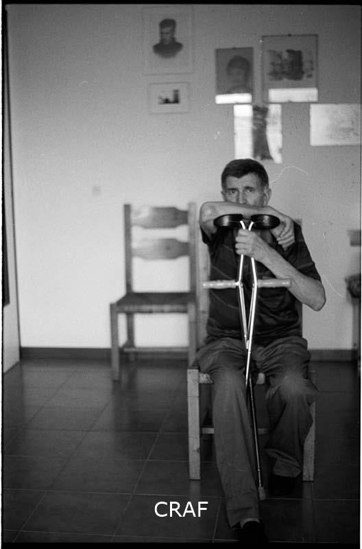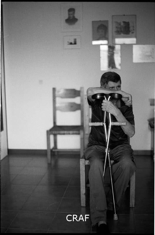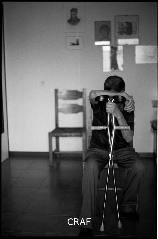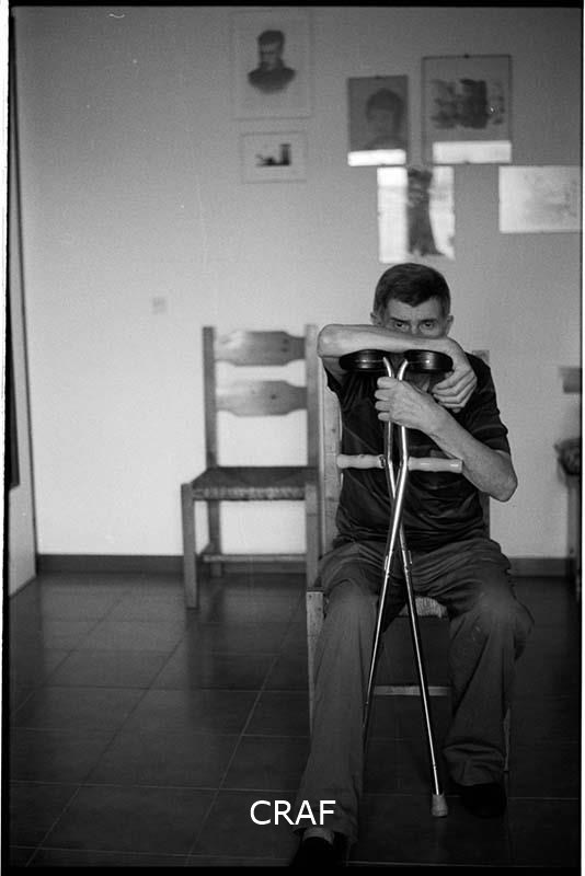 Autoritratto del fotografo Aldo Beltrame da anziano in un interno, seduto su...