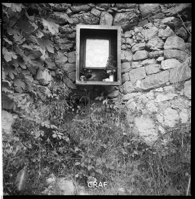Edicola sacra posizionata all'esterno di un edificio rurale in pietra a...