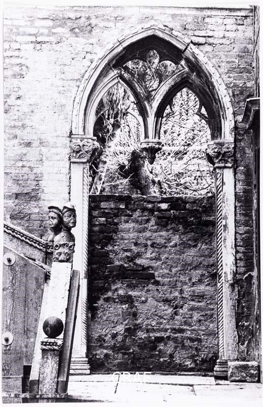 Arco gotico lungo la scala esterna di palazzo Contarini della Porta di Ferro....