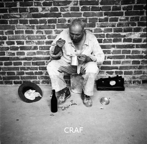 Pausa pranzo di un muratore durante la costruzione delle scuole medie inferiori...