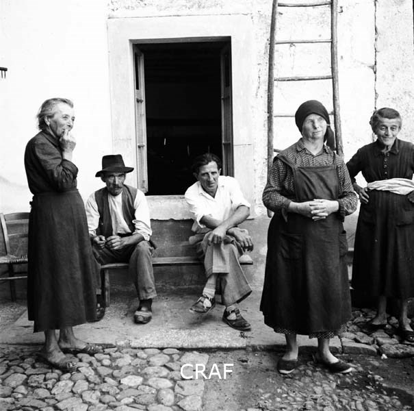 Tre fanciulli ( due bambine e una bambino ) fra case rurali