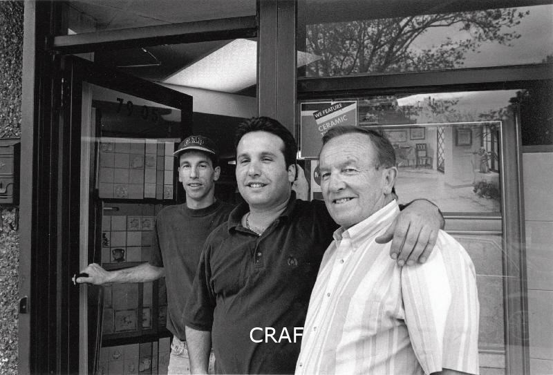 Marcello Filippi con i figli Michael a sinistra e Robert davanti al negozio di...