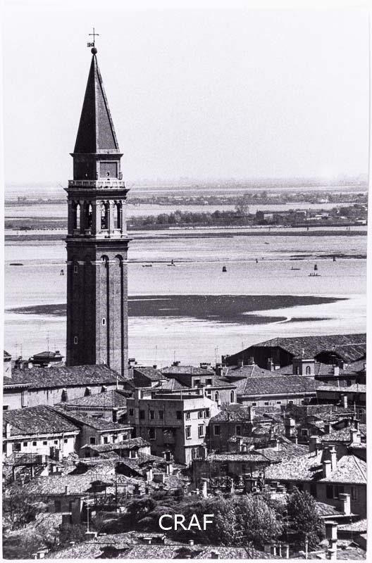 Il campanile della chiesa di San Francesco della Vigna, sullo sfondo la laguna...