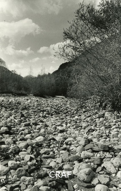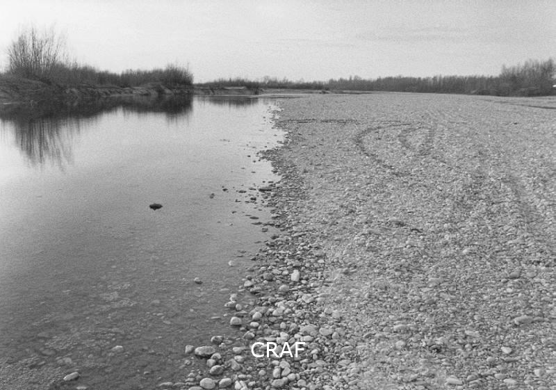 Fiume Natisone. Segni del passaggio di veicoli sulla ghiaia