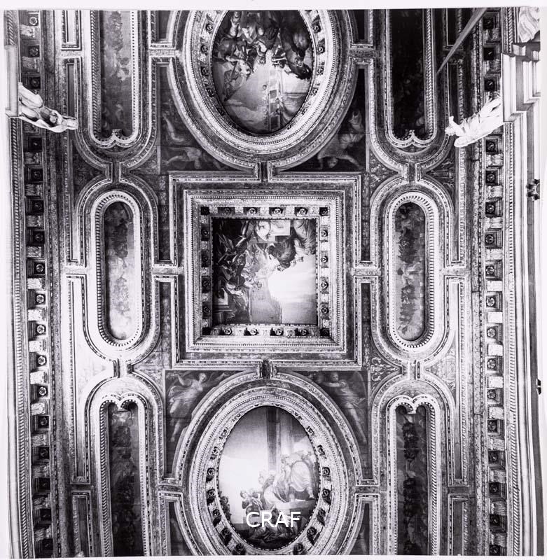 Il soffitto della navata della chiesa di San Sebastiano con i dipinti del...