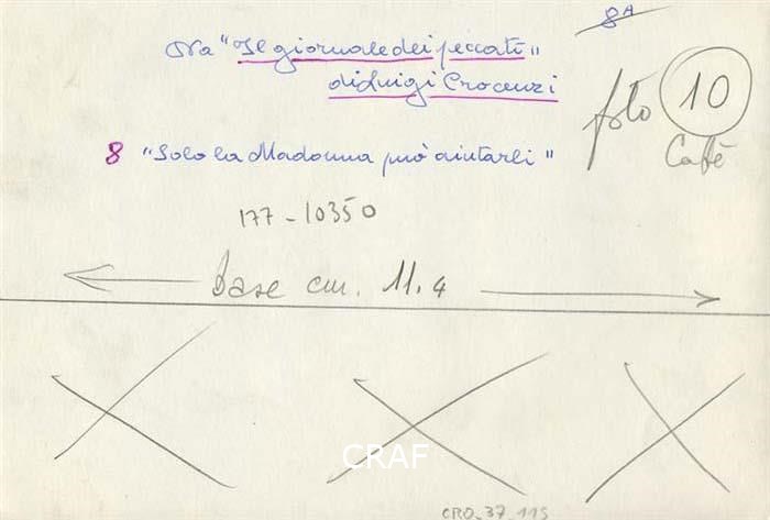 « Solamente la Madonna può aiutarli » Didascalia riportata sia sul verso del positivo sia sotto all'immagine pubblicata nel fotoracconto dal titolo "Il giornale dei peccati" in Venerdì Il Caffè Politico Letterario mensile di attualità n. 2 febbraio 1955.