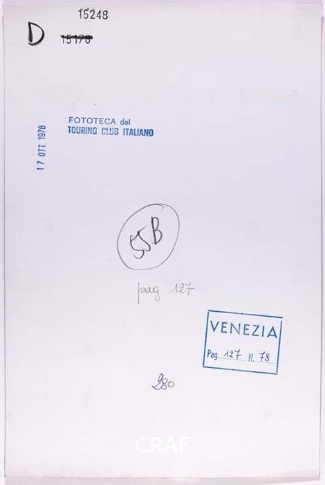 Mausoleo del doge Giovanni Pesaro del Longhena ai Frari. Didascalia riportata sotto all'immagine pubblicata nel volume Venezia TCI del 1978 (immagine n. 78, pag. 127). Scatto realizzato in occasione della campagna fotografica per il volume Abbazie e conventi TCI del 1973, ma in quell’occasione non pubblicato.