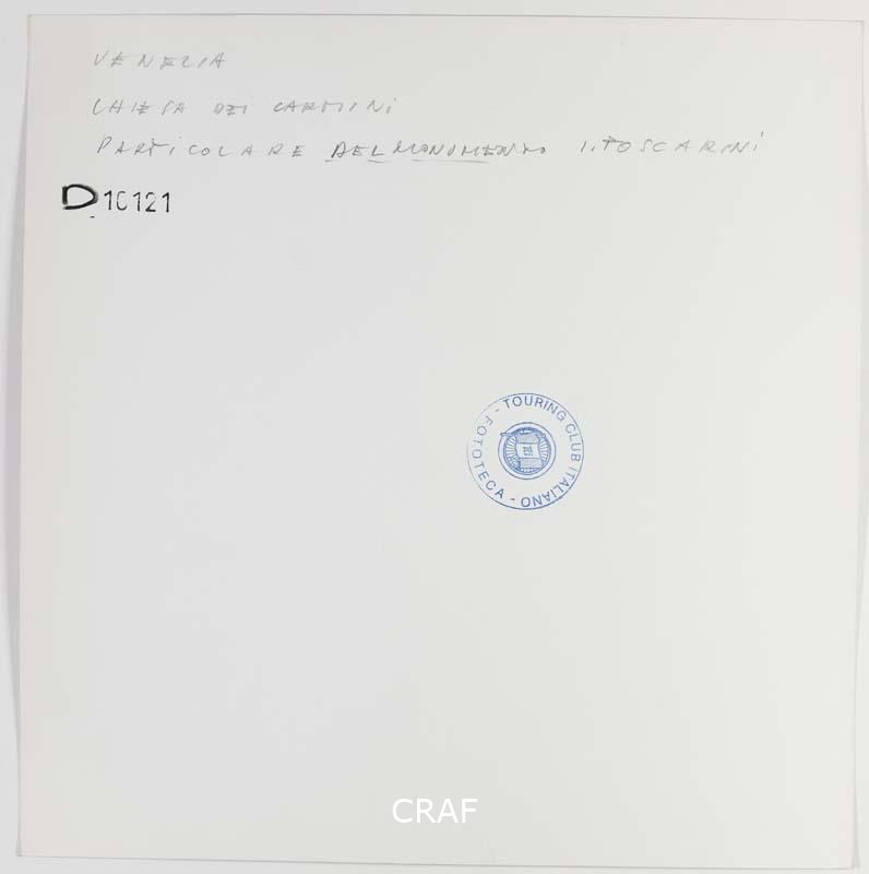 Particolare del monumento Funebre di Jacopo Foscarini sulla controfacciata della chiesa di Santa Maria dei Carmini. Scatto realizzato nell'ambito della campagna fotografica per il volume Venezia TCI del 1978, ma in quell’occasione non pubblicato.