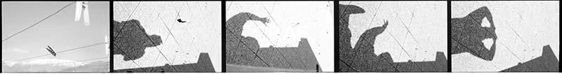 La luce del sole proietta l'ombra del fotografo, che tiene le mani sulla testa, su una pavimentazione. Per confronto con altri negativi dell'autore, la fotografia è probabilmente scattata sul tetto del condominio di Avezzano dove il fotografo abitava.