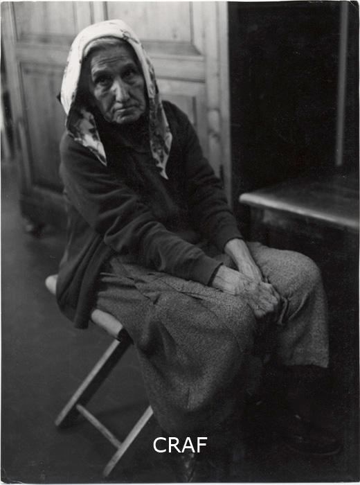 Ospizio. Interno Ritratto di donna anziana con fazzoletto sul capo e manitra le ginocchia