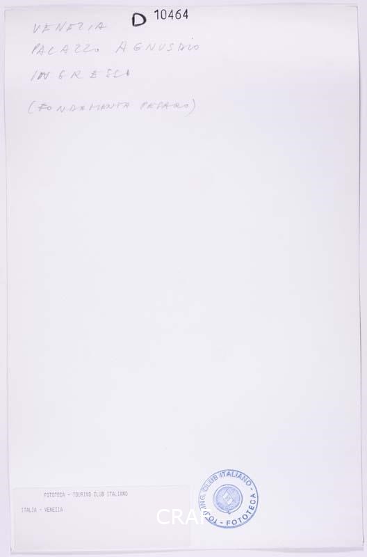 Portale d'ingresso di Palazzo Agnusdio, o dei Quattro Evangelisti, a Santa Croce. Scatto realizzato nell'ambito della campagna fotografica per il volume Venezia TCI del 1978, ma in quell’occasione non pubblicato.