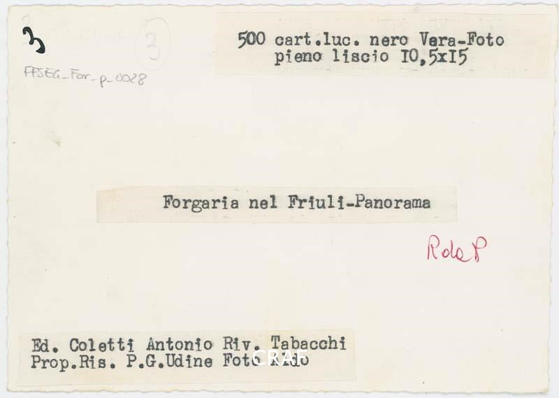 Veduta di Forgaria ripresa da via Val con al centro il campanile di San Nicolò, demolito dopo il sisma del 1976.