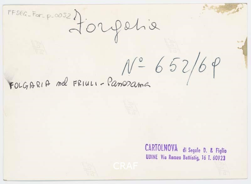 Veduta di Forgaria ripresa dalle alture circostanti; sullo sfondo il campanile di San Nicolò, demolito dopo il sisma del 1976.
