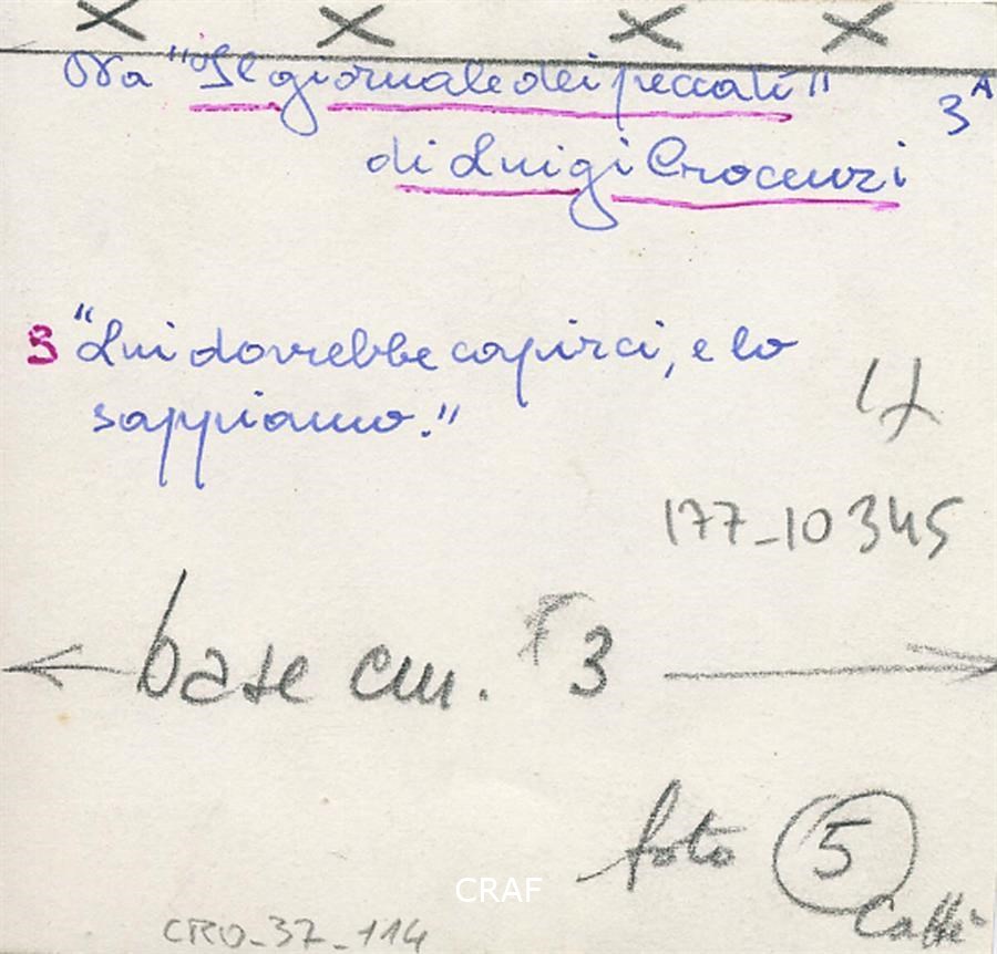 « Lui dovrebbe capirci, e lo sappiamo », didascalia riportata sia sul verso del positivo sia sotto all'immagine pubblicata nel fotoracconto dal titolo "Il giornale dei peccati" in Venerdì Il Caffè mensile di attualità n. 2 febbraio 1955.