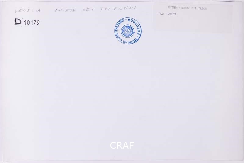 Turisti in gondola ammirano la facciata della chiesa dei Tolentini. Scatto realizzato nell'ambito della campagna fotografica per il volume Venezia TCI del 1978, ma in quell’occasione non pubblicato.
